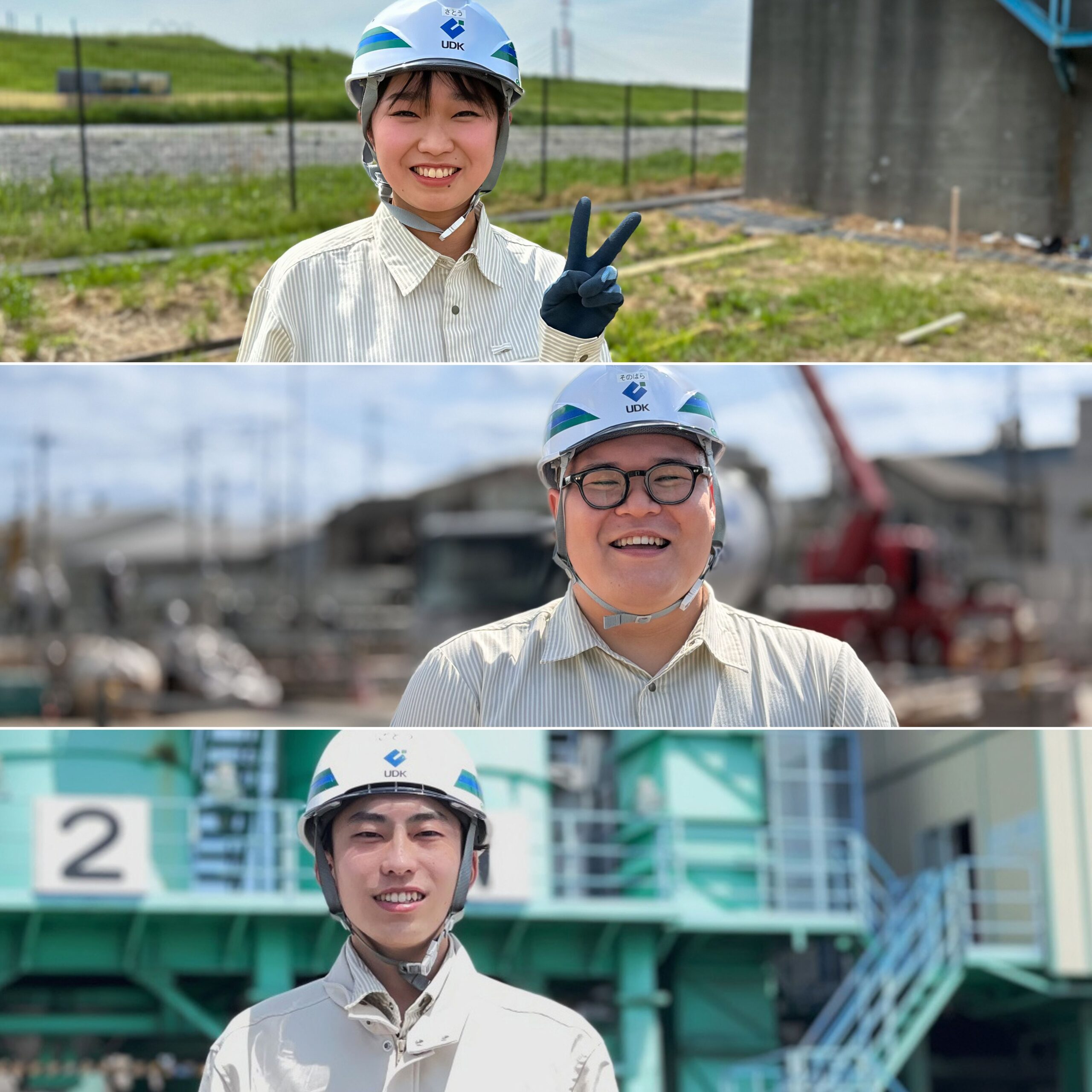 【土木部】2025年入社(上段) インターンシップで現場の雰囲気を直接感じられたところが入社につながりました。どの現場の方も優しく楽しく生き生きとされていて、そういった現場の雰囲気が、仕事のしやすい環境だと思い入社を決めました。 【建築部】2025年入社(中段) インターンシップに参加した際に社員の方々の温かい雰囲気に触れここで働きたいと思ったことが一番です。私も大きなやりがいを感じながら仕事をしたいと思い入社しました。 【製品事業部】2020年入社(下段) 埼玉県内でも幅広く事業展開をしており、アットホームな雰囲気に魅力を感じました。入社してからも上司や先輩方と気兼ねなく仕事やプライベートの相談もでき、コミュニケーションの取れる風通しの良い会社で、気持ちに余裕をもって働けてます。